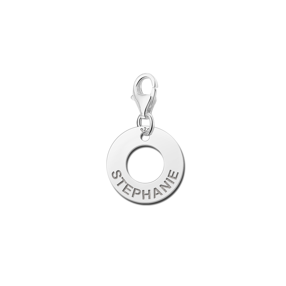 Charm Anhänger aus 925/000 Silber (Ø 14 mm) mit Kreisform und Namen deiner Wahl. Mit diesem Charm Anhänger wird dein Armband oder deine Kette zu einem sehr persönlichen Schmuckstück! Mit dem Karabinerhäkchen am Anhänger kannst du den Charm Anhänger ganz problemlos in ein Armband oder eine Kette einhängen. Schnelle Lieferung – versandkostenfrei! Das Armband ist separat erhältlich.